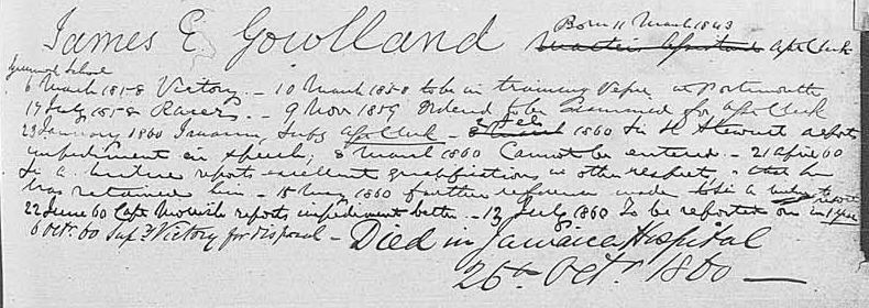 Apprenticeship Record for Thomas Gowland to William Tapley of