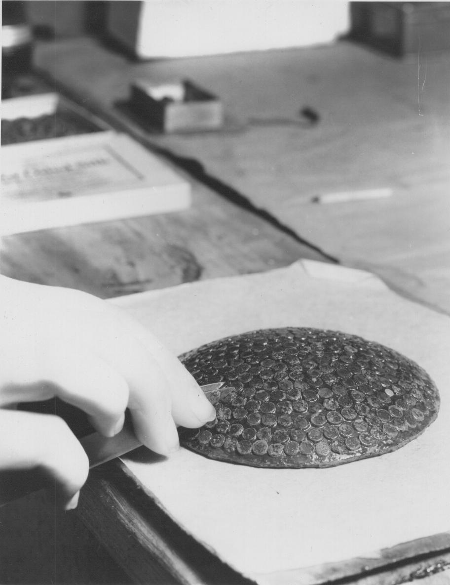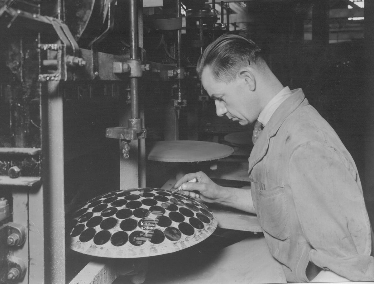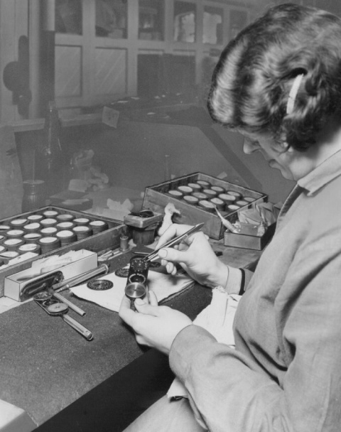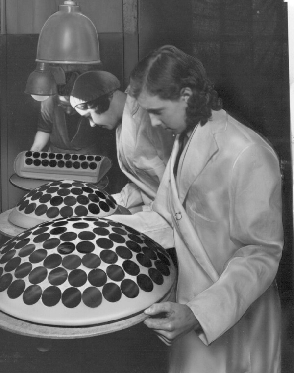 Inspecting large block of finished mirrors - Miss Barbara Watson |