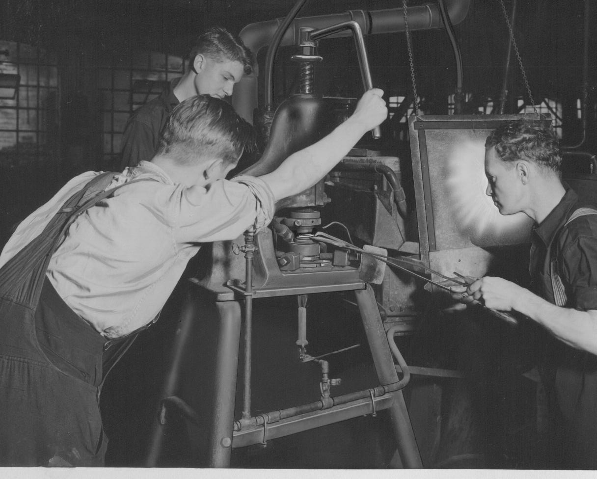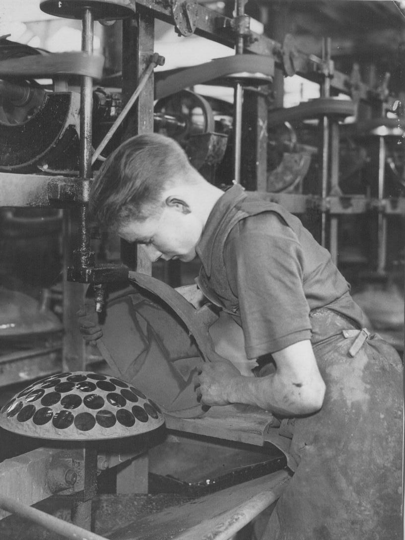 Servicing cast-iron tools and runners from Glass Grinding Department |