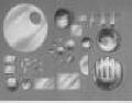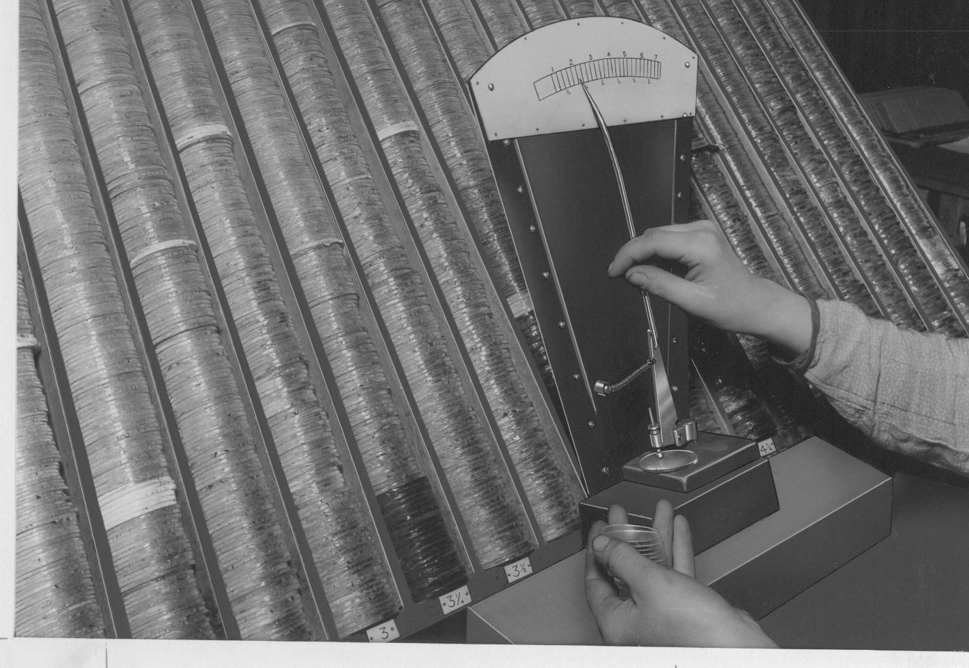 Batches of finished components for lens measure awaiting degreasing, chrome-plating and assembly |